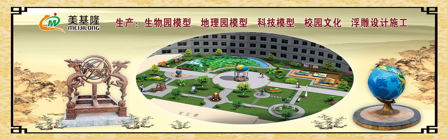 廣東順德美基隆園林藝術(shù)有限公司是集產(chǎn)品開發(fā) , 設(shè)計制作校園雕塑文化、地理園、生物園、生態(tài)園、科技園,浮雕、人物雕像仿真動物,綠化校園中小學實驗室配套為一體的大型教學設(shè)備企業(yè)廠家。廣東順德美基隆園林藝術(shù)有限公司自成立以來,堅持以質(zhì)量立品牌、藝術(shù)求真知、專業(yè)為教育、服務(wù)守承諾的服務(wù)宗旨,致力于教育行業(yè),并為教育事業(yè)提供高品質(zhì)的設(shè)計、制作、銷售、安裝等優(yōu)質(zhì)的服務(wù)。